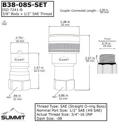 - Diámetro de la cara hembra: 1,38″ (35 mm)