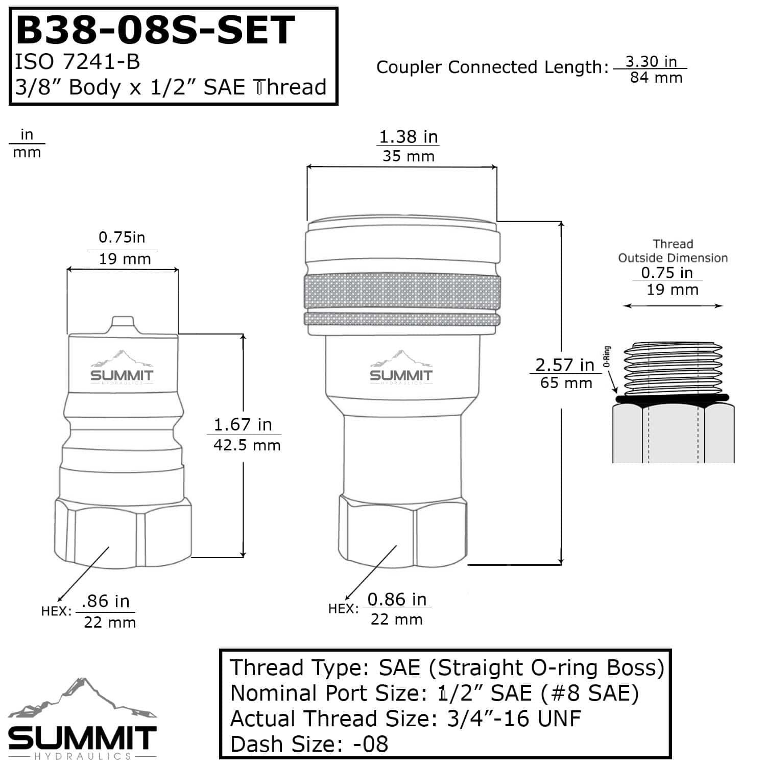 - Diámetro de la cara macho: 0,75″ (19 mm)