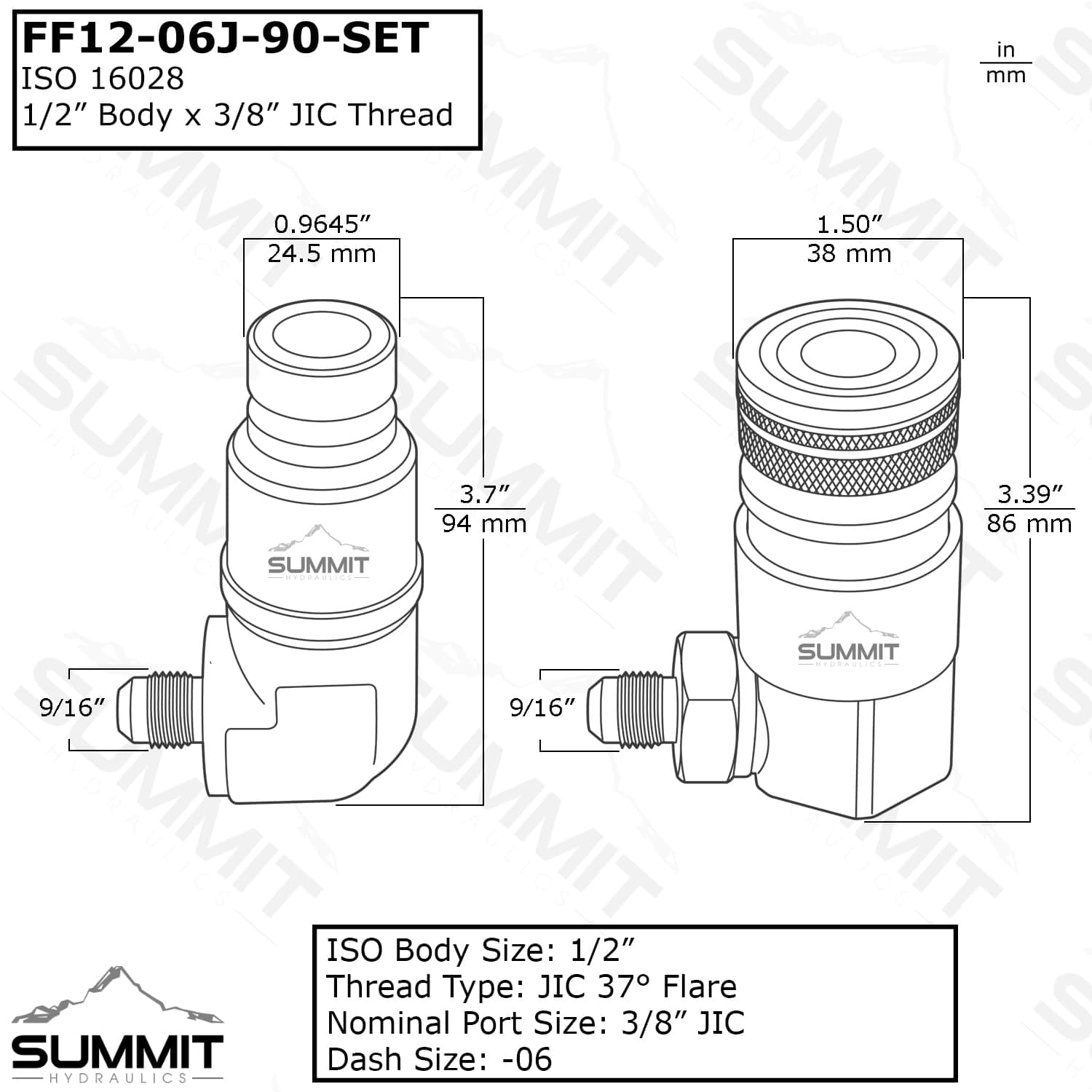 - Diámetro de la cara macho: 0,94" (24,5 mm)