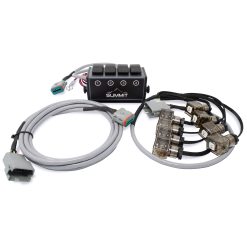 - Caja de interruptores con cuatro interruptores basculantes momentáneos que saltan automáticamente a la posición neutra