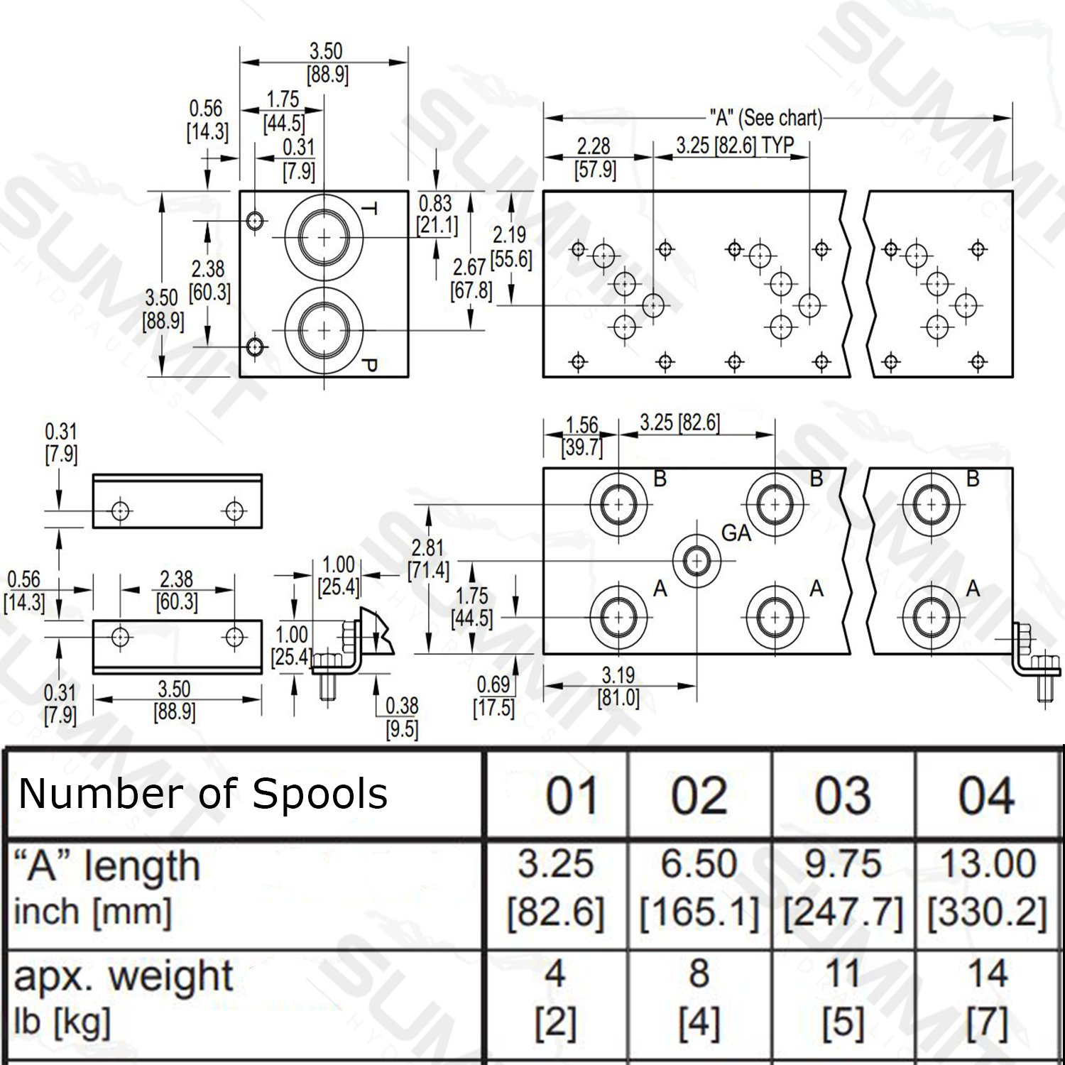 - Presión máxima de funcionamiento: P = 5080 PSI, T = 3050 PSI, A & B = 5080 PSI