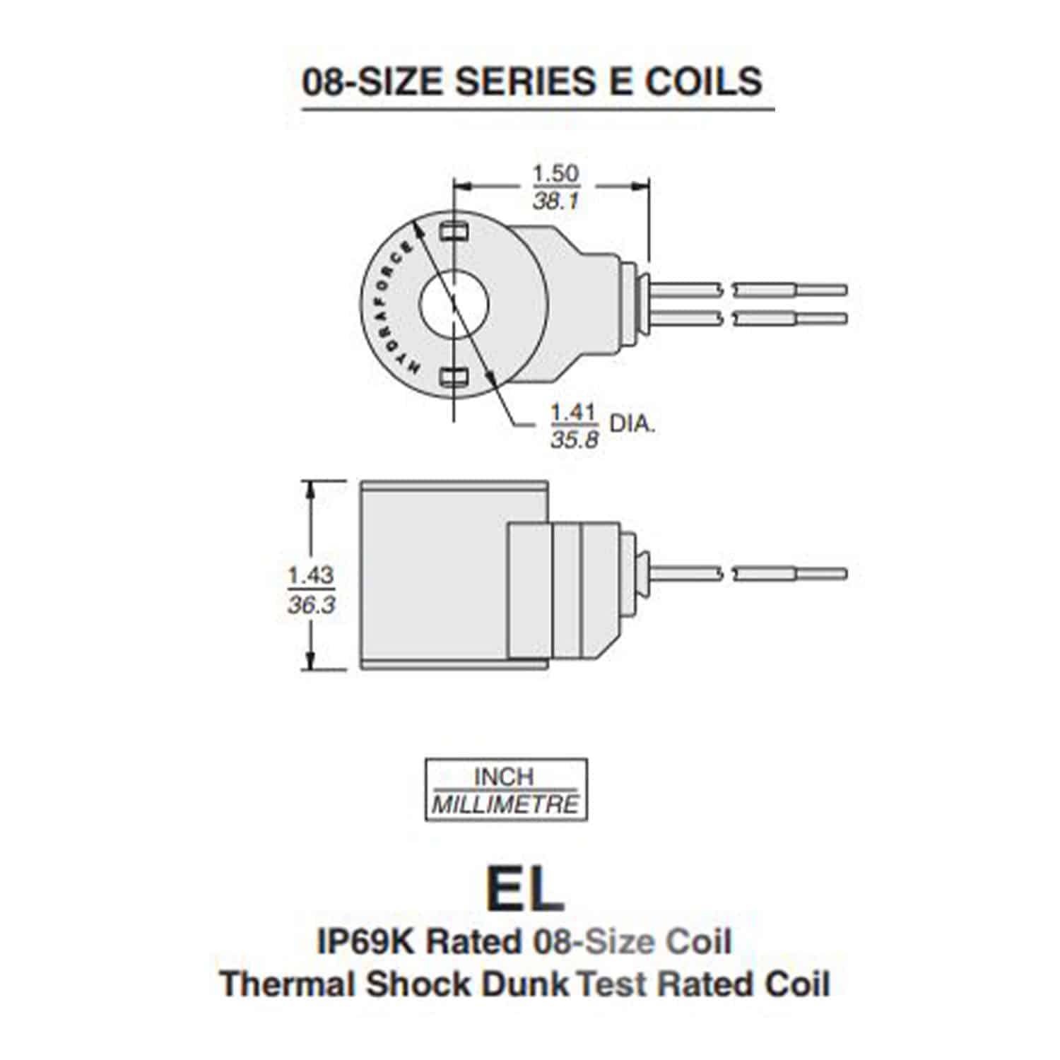 Bobina de válvula de solenoide HydraForce 4305112, cables dobles, 12 V CC, serie 08