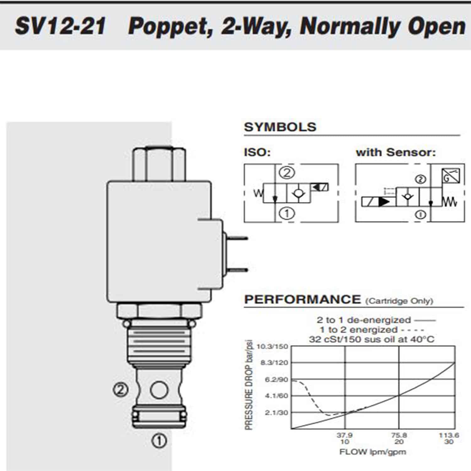 Hydraforce SV12-21-0-N-00 Válvula de cartucho de asiento de solenoide, 2 vías, normalmente abierta