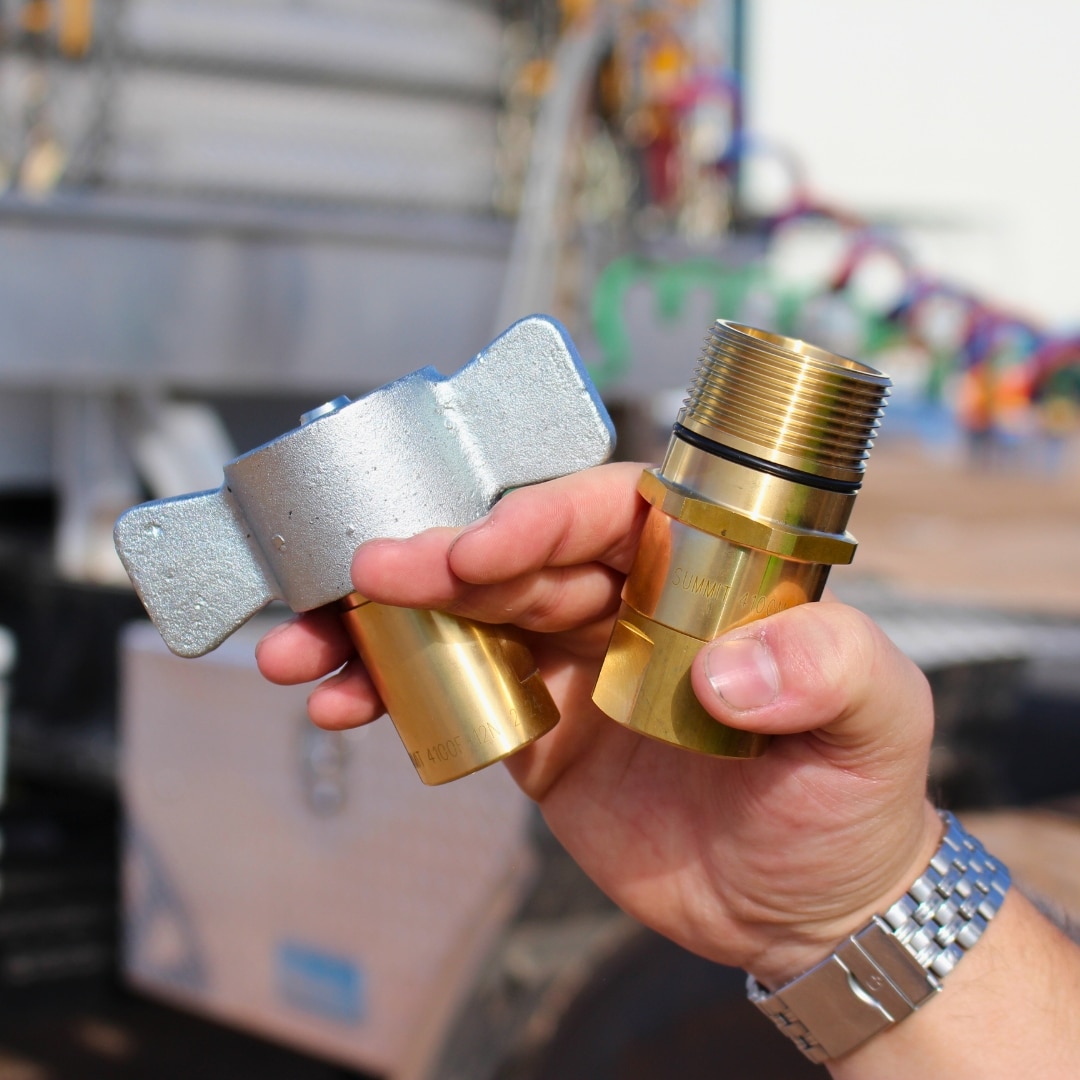 Summit 1-1/4″ Wet-Line / Wing Nut Couplers are designed for industrial applications that require couplings to be connected and disconnected under pressure with little to no fluid loss. Wet-line couplers are commonly used on live bed / dump trailer wet-line hydraulic systems and other heavy duty applications.