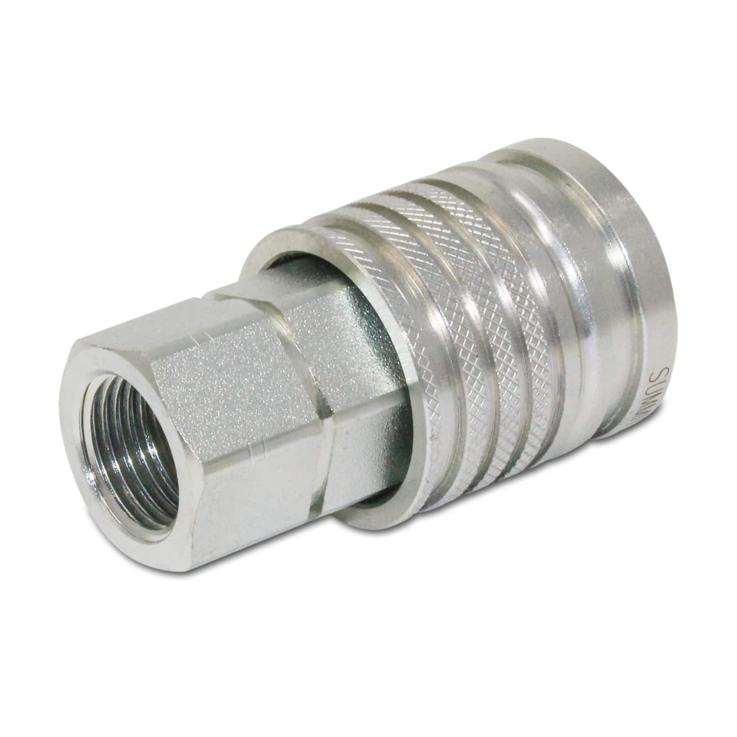 This series of couplers are the most common quick connect couplers used in the agriculture, construction and logging industries. They are interchangeable with all ISO 5675 series including ball seat valve, poppet seal, push-pull couplings.