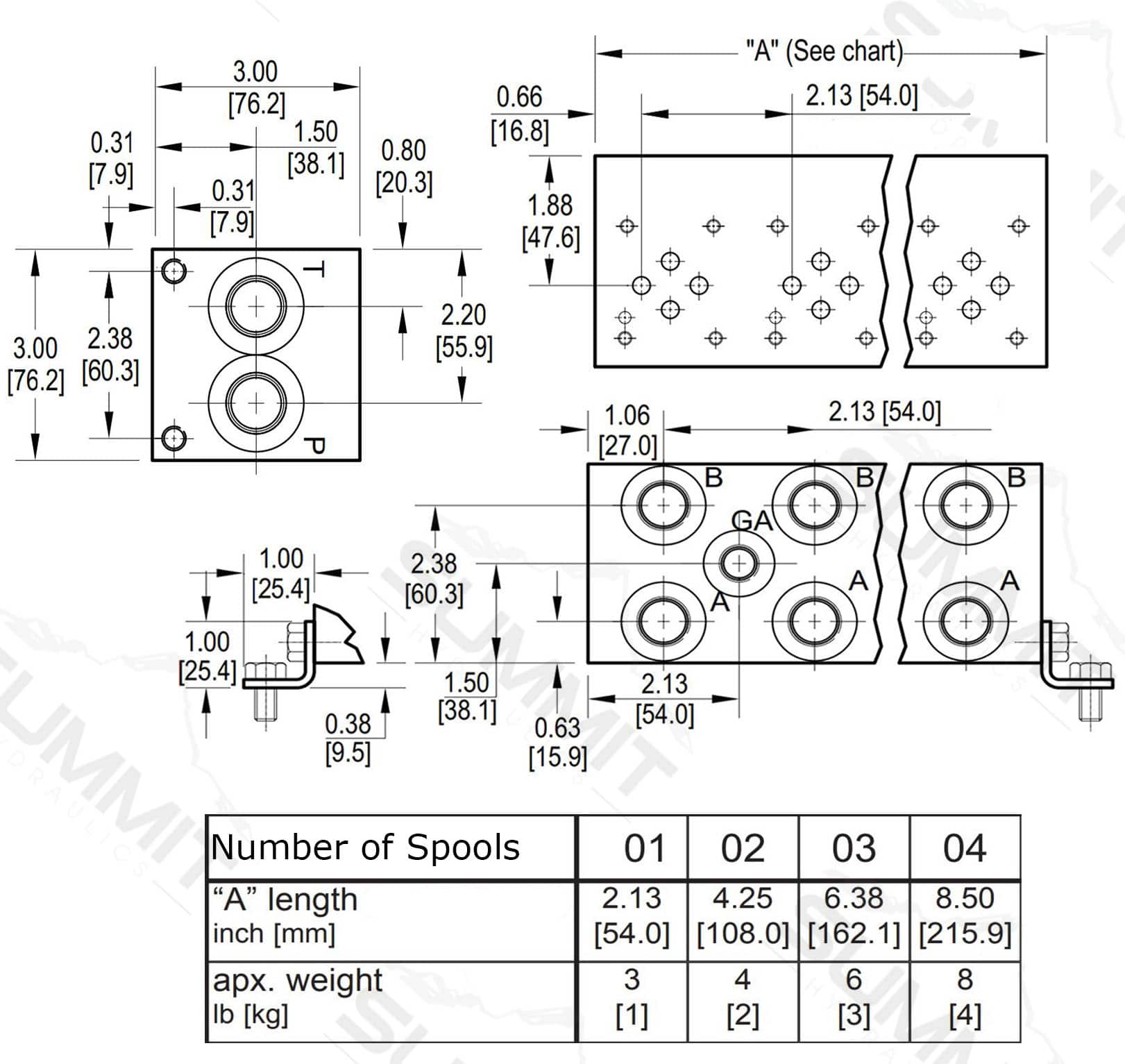 - T port is closed to tank in the neutral position, and is designed for use on closed-center hydraulic systems. No load sensing options are available on this valve.