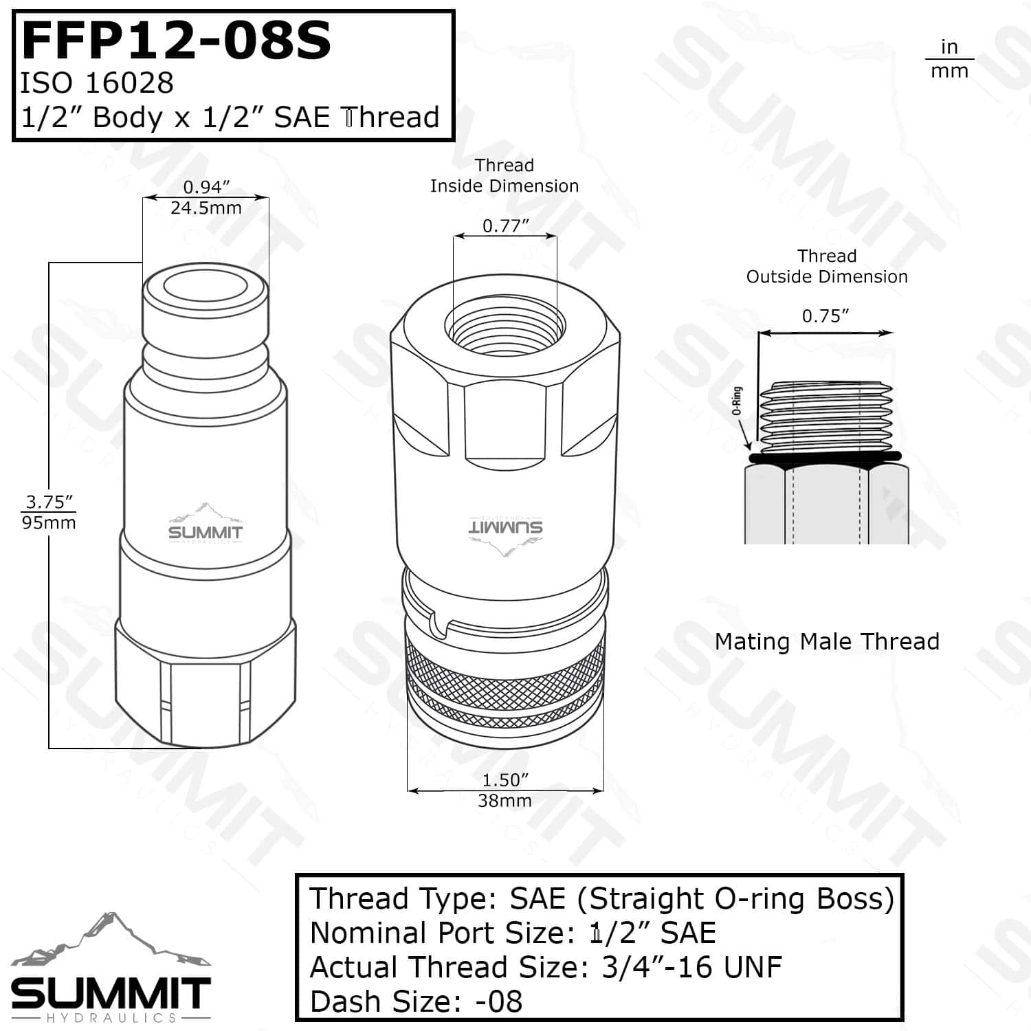 Port Thread: #8 SAE Thread ( 1/2″ O-Ring Boss)
