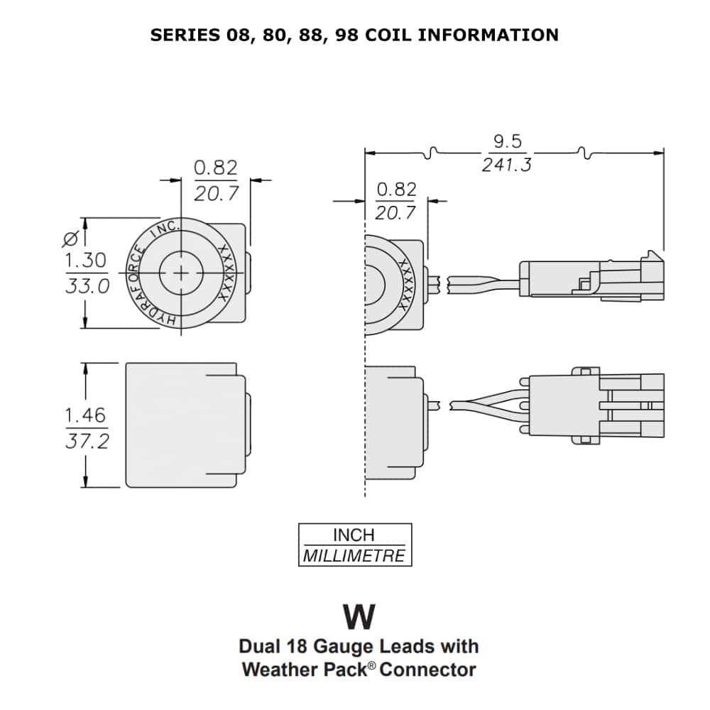 HydraForce 6309412 Solenoid Valve, Weather Pack Connector, 12v DC, 08 Series
