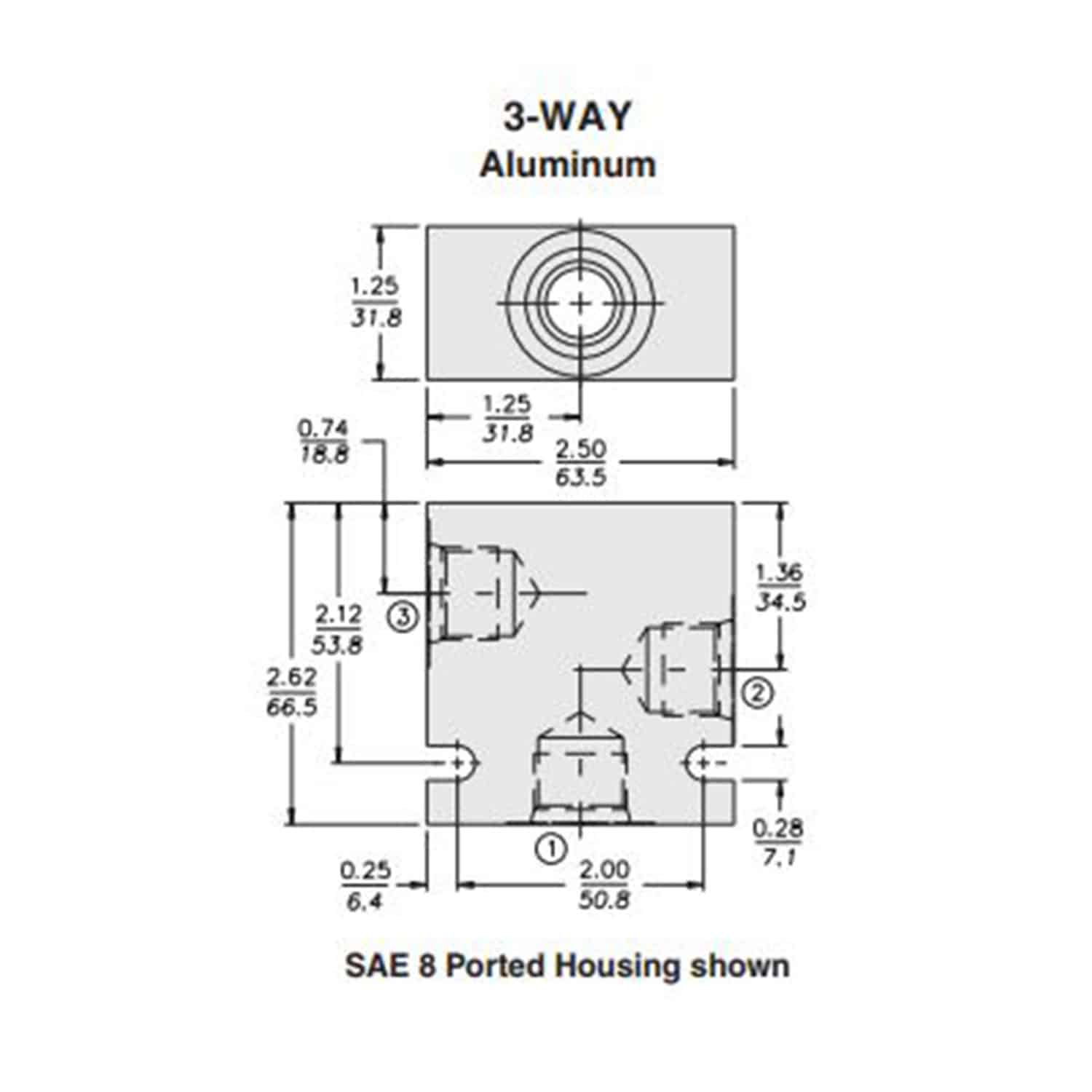 Hydraforce 7024760 Manifold Valve Body Housing, 3-Way, #6 SAE Ports, Size 08