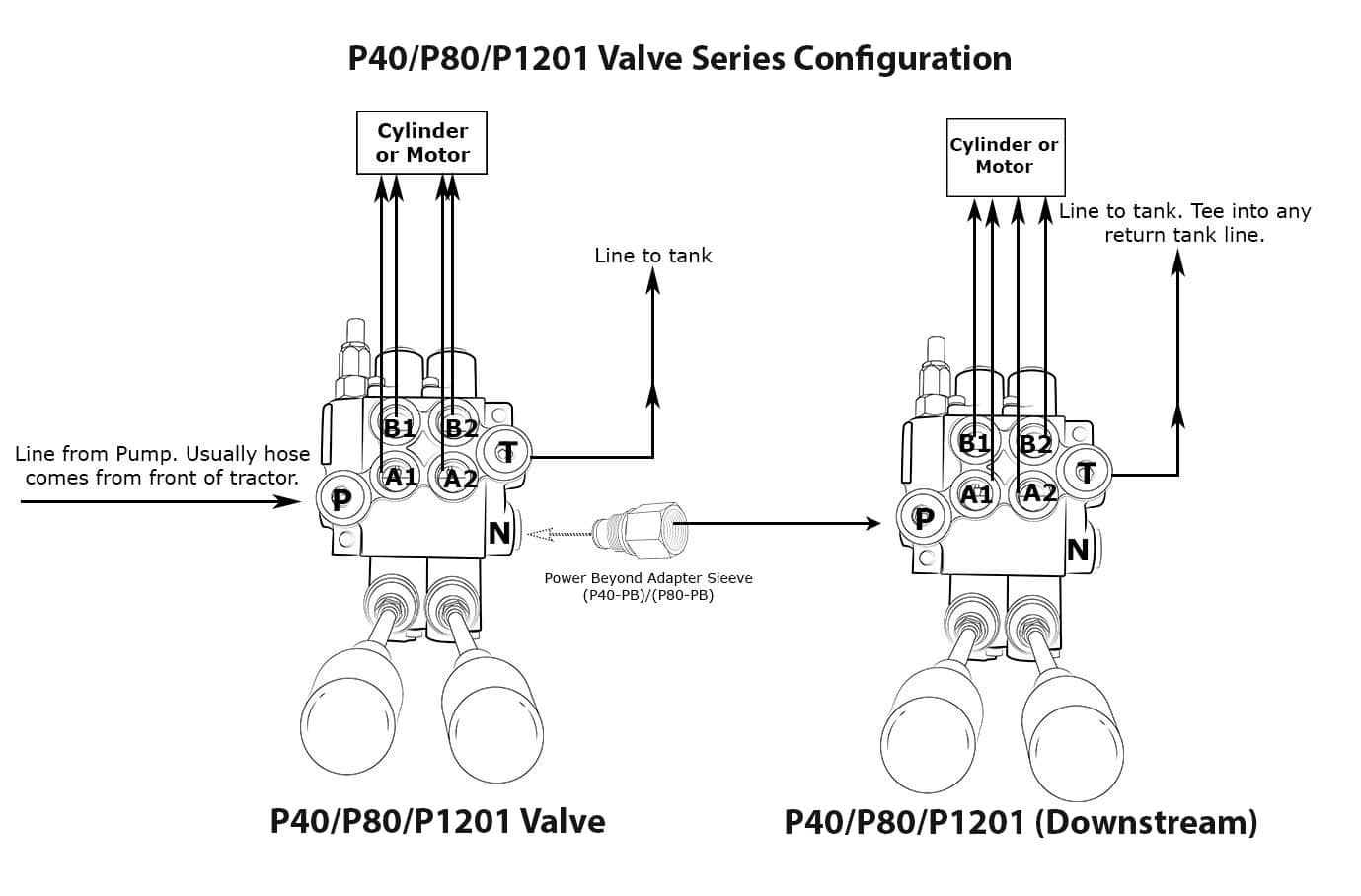 - Do you have other valves downstream from this valve (Examples include: Other Control Valves, Rear Remote Valve, Backhoe Valve, 3-Point Valve)? If so, you’ll need the power beyond adapter sleeve to provide pressure and flow to those valves. Note: This is only needed on open-center hydraulic systems. If you have a closed-center system, you will tee into a pressure line to connect other valves.