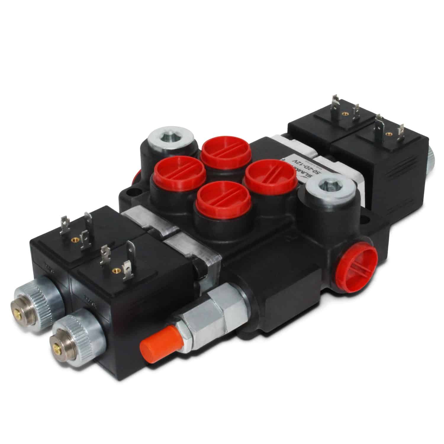 Hydraulic Monoblock Solenoid Control Valve, 2 Spool, 13 GPM, 12V DC