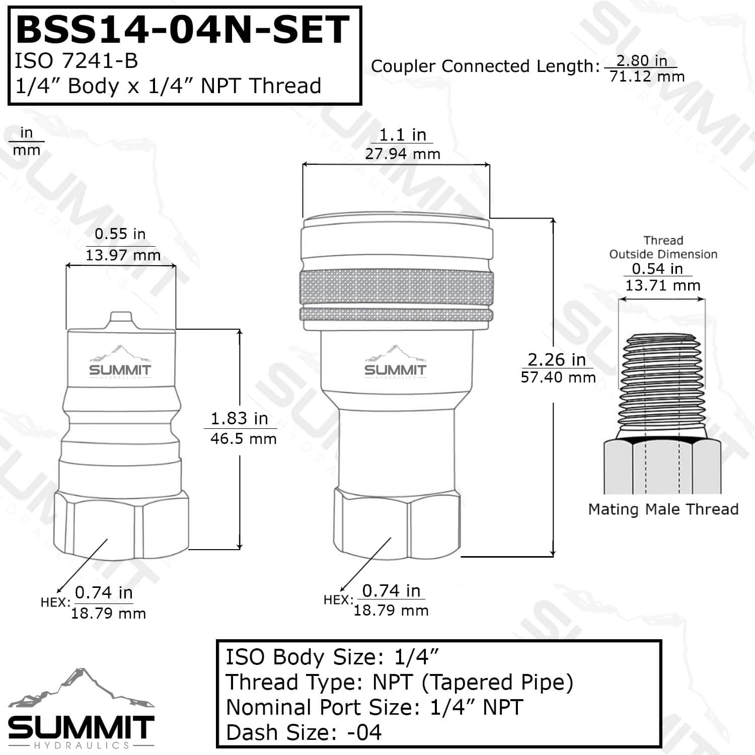 The ISO 7241 B Series of quick disconnect couplers are used on a large spectrum of hydraulic applications with strenuous quality standards such as the aerospace, automotive, electronics industries. They are also recommended for general purpose, machine tools, mobile hydraulics, and other equipment applications. Our Series B couplers are interchangeable with all ISO 7241 B series couplings.