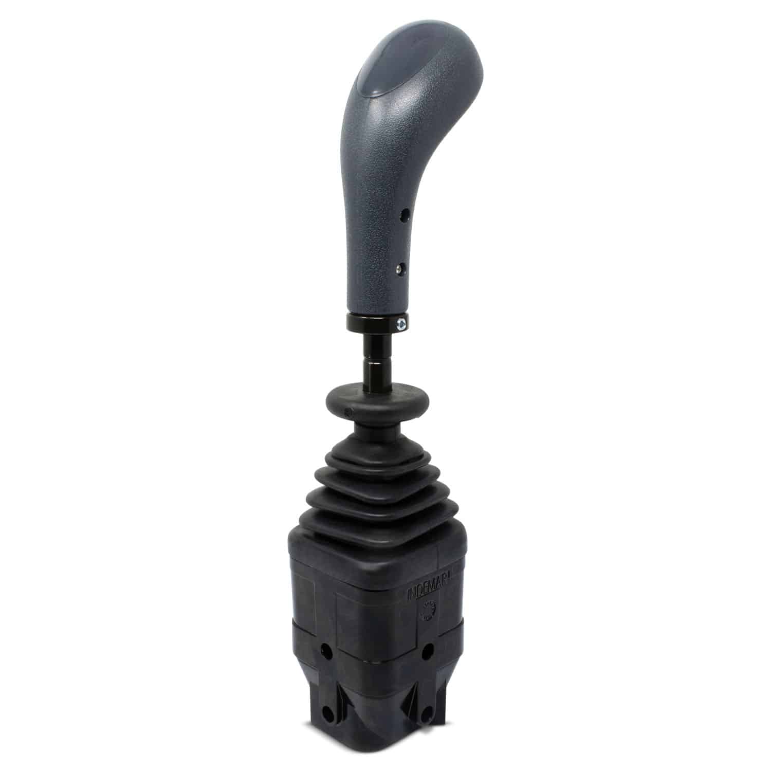 This heavy duty joystick is used to control double acting hydraulic loader control valves using remote cables. The joystick can lock in the center (neutral) position to prevent accidental actuation, and can easily be installed.